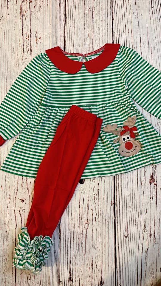 RTS Deer Green Striped Girl 2pc
